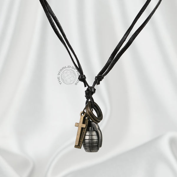 Antique Silver Grenade Leather Chain Stylish Fashion Accessory