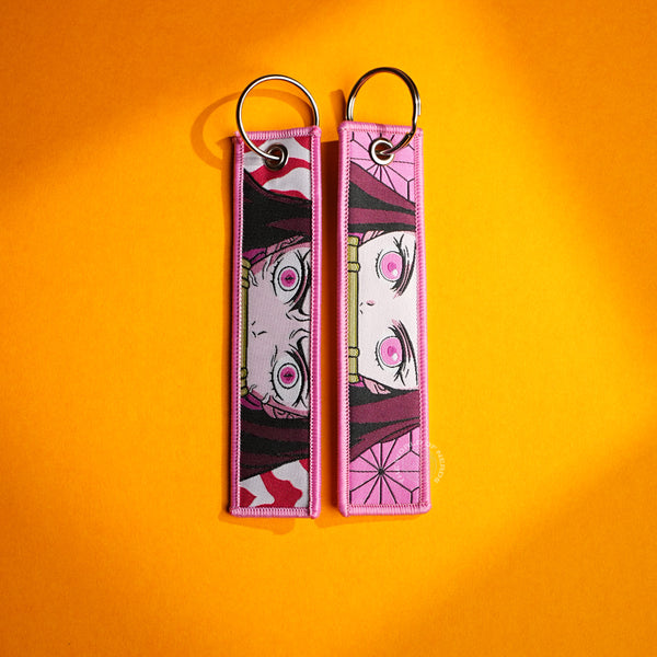 Demon Slayer Keychain | Double-Sided Fabric Key Ring with Nezuko Kamado