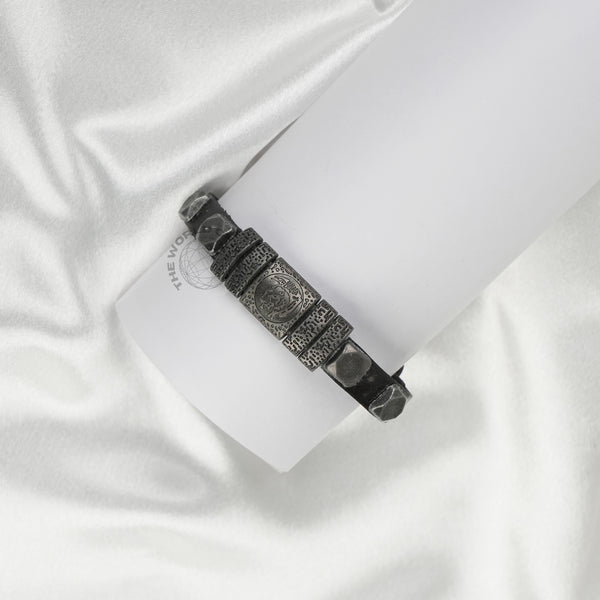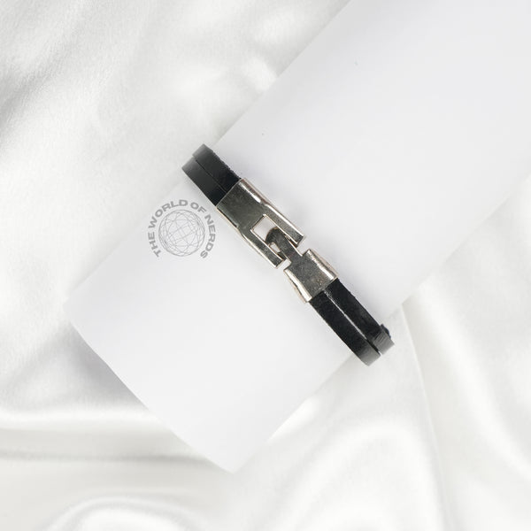 Black Leather Bracelet with Metal Lock Imported Fashion Accessory