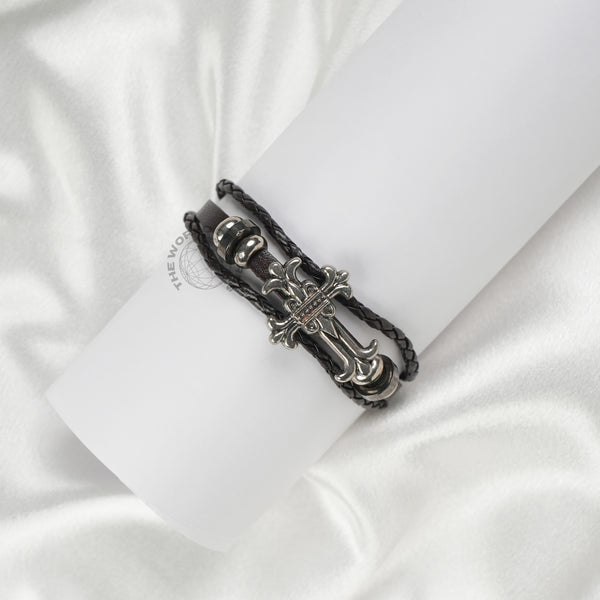 Cross Sign Beaded Leather Bracelet Imported Fashion Accessory