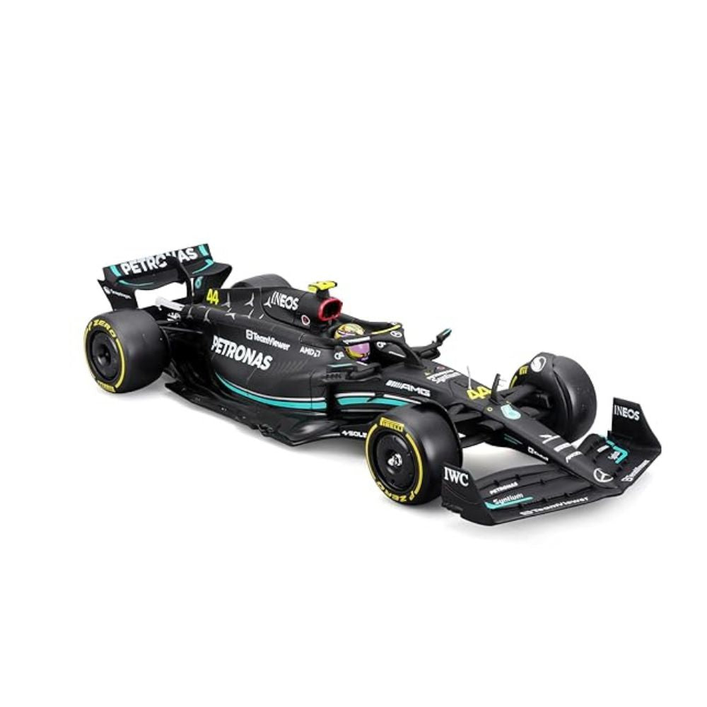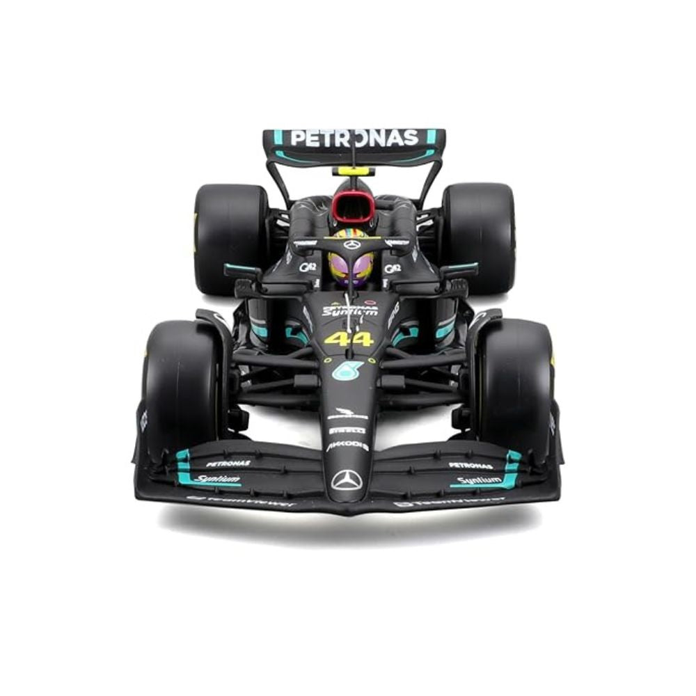 The BBURAGO MERCEDES-AMG F1 W14 E PERFORMANCE #44 LEWIS HAMILTON F1 SCALE - 1:24 is a finely crafted, 1:24 scale replica of the iconic Formula 1 car driven by Lewis Hamilton. Featuring authentic details and precision engineering, this model is perfect for avid F1 fans and collectors alike.