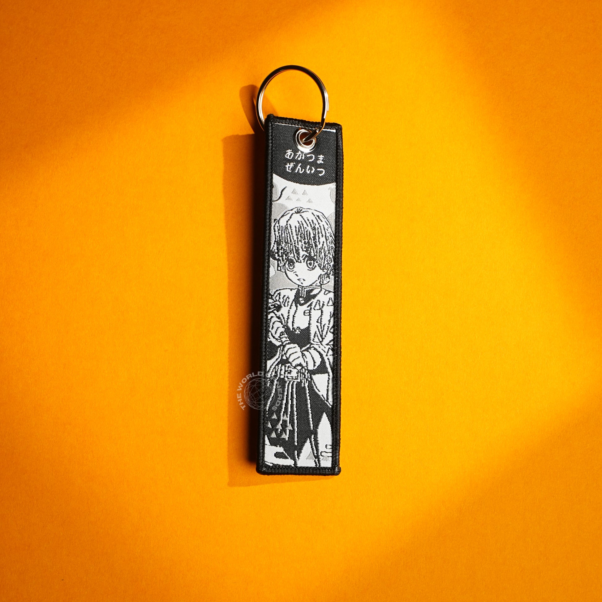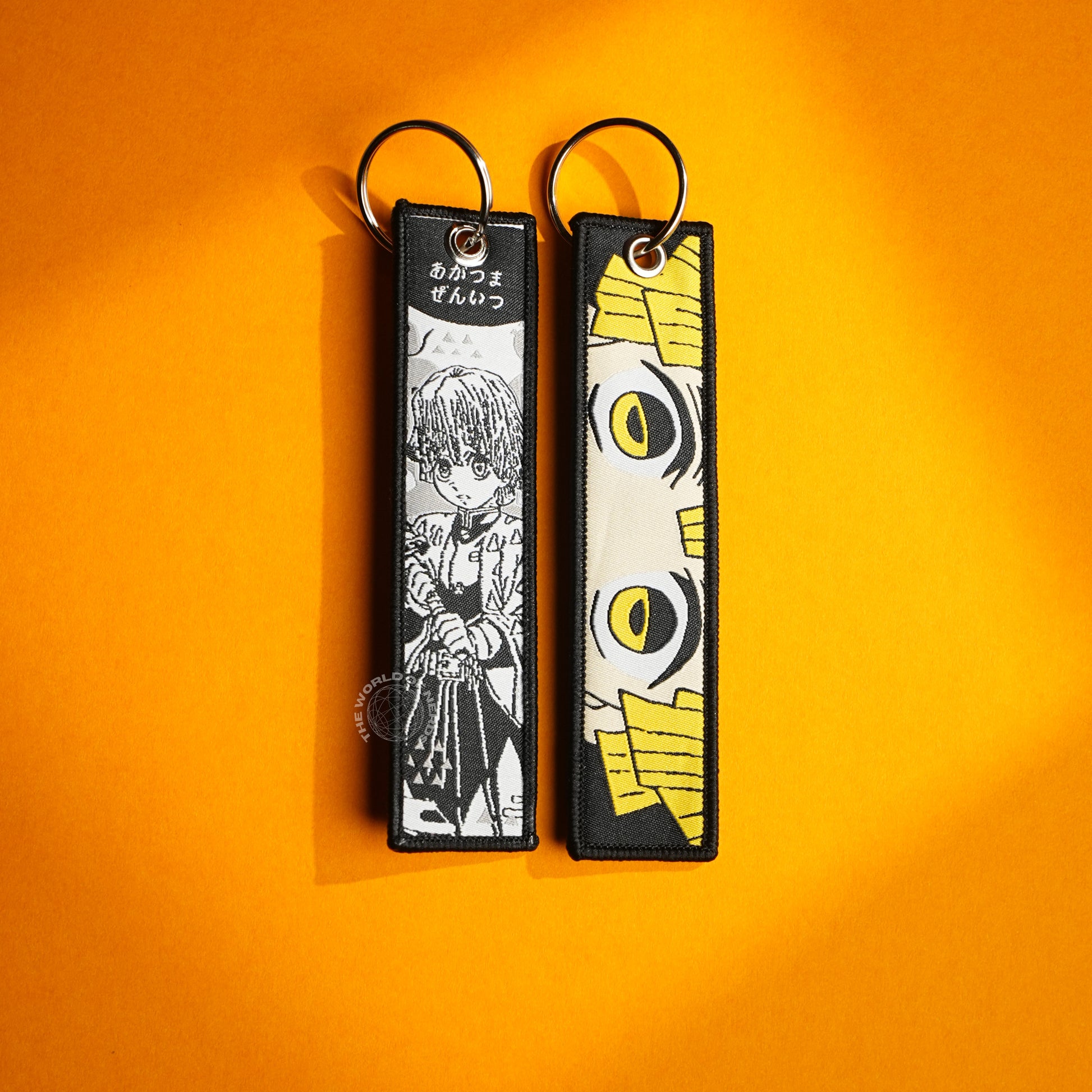This double-sided keychain features Zenitsu Agatsuma from Demon Slayer: Kimetsu no Yaiba. One side shows his manga-style art, while the other highlights his sharp, determined eyes in a striking yellow design. A perfect blend of his timid nature and hidden strength, this keychain makes a bold accessory for anime fans.