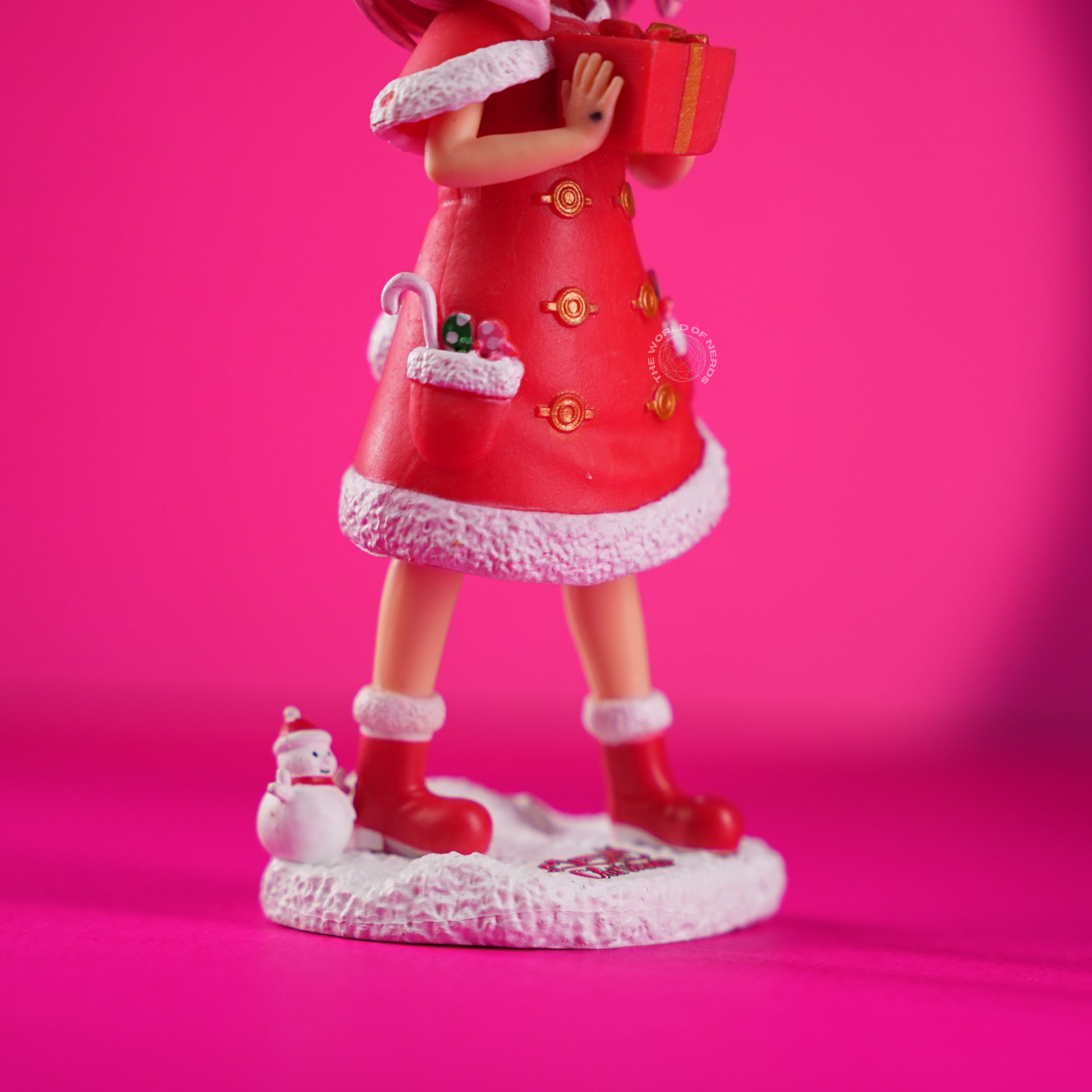 This adorable approximately 15cm anime girl figurine captures the magic of the holidays with her cheerful expression and vibrant pink hair. Outfitted in a Santa-style dress trimmed with snowy white, reindeer antlers on her hat, and candy cane accents, she holds a bright present ready to give. The snowman at her feet and playful winter details complete the festive scene. A charming centerpiece for seasonal displays or anime collections, she embodies the spirit of Christmas in lively, collectible form.