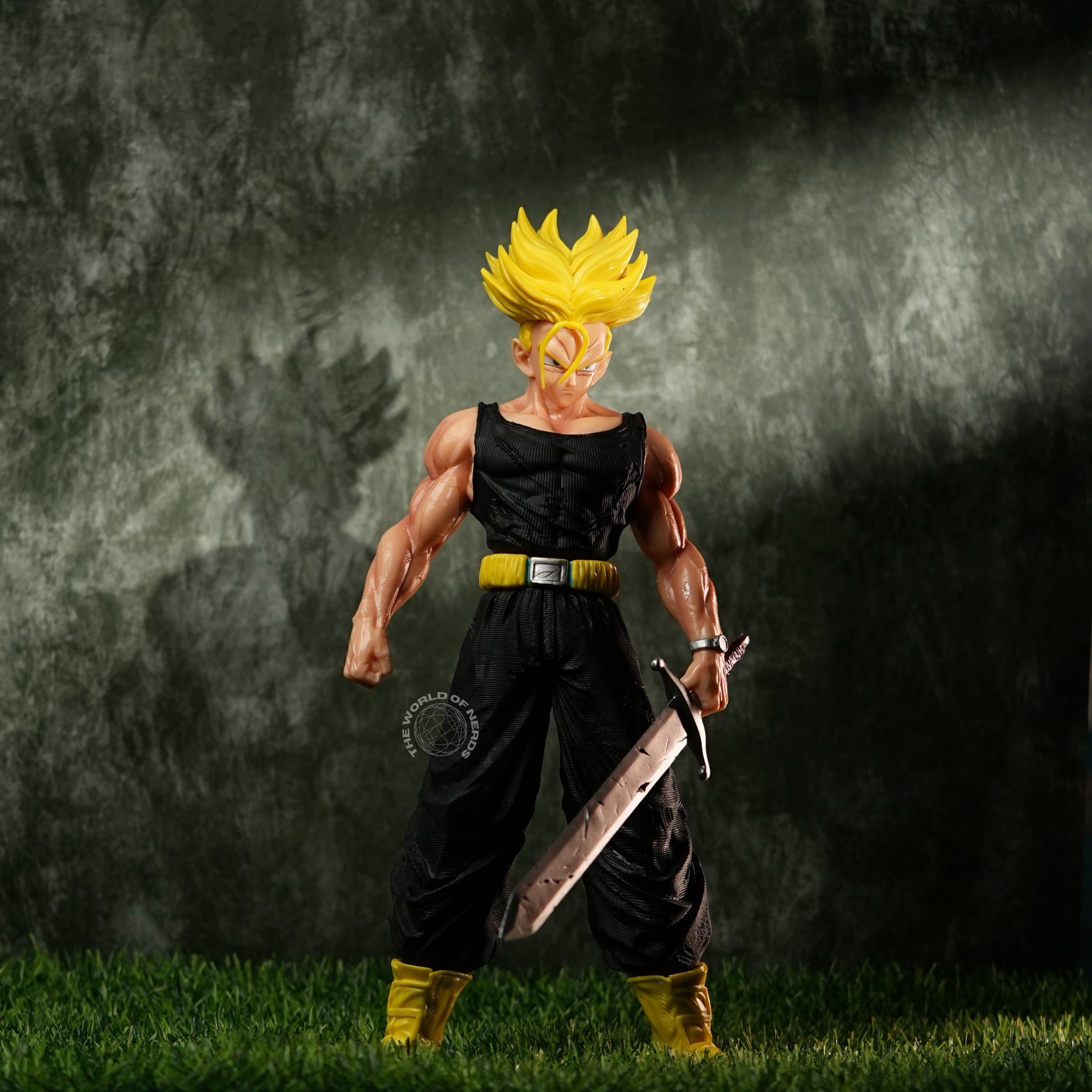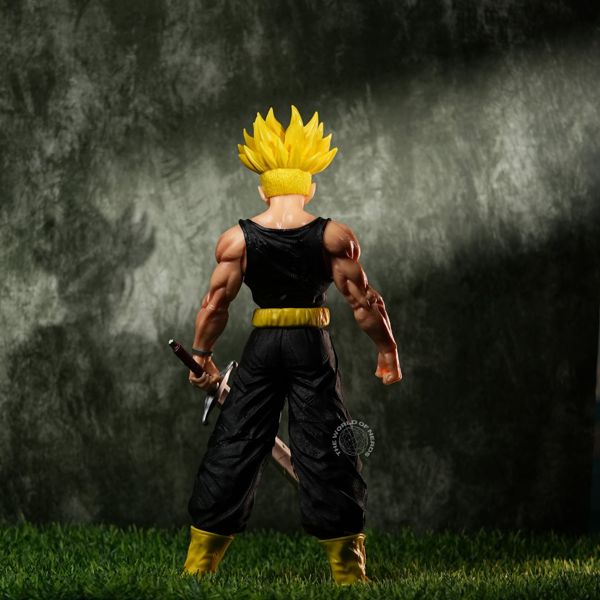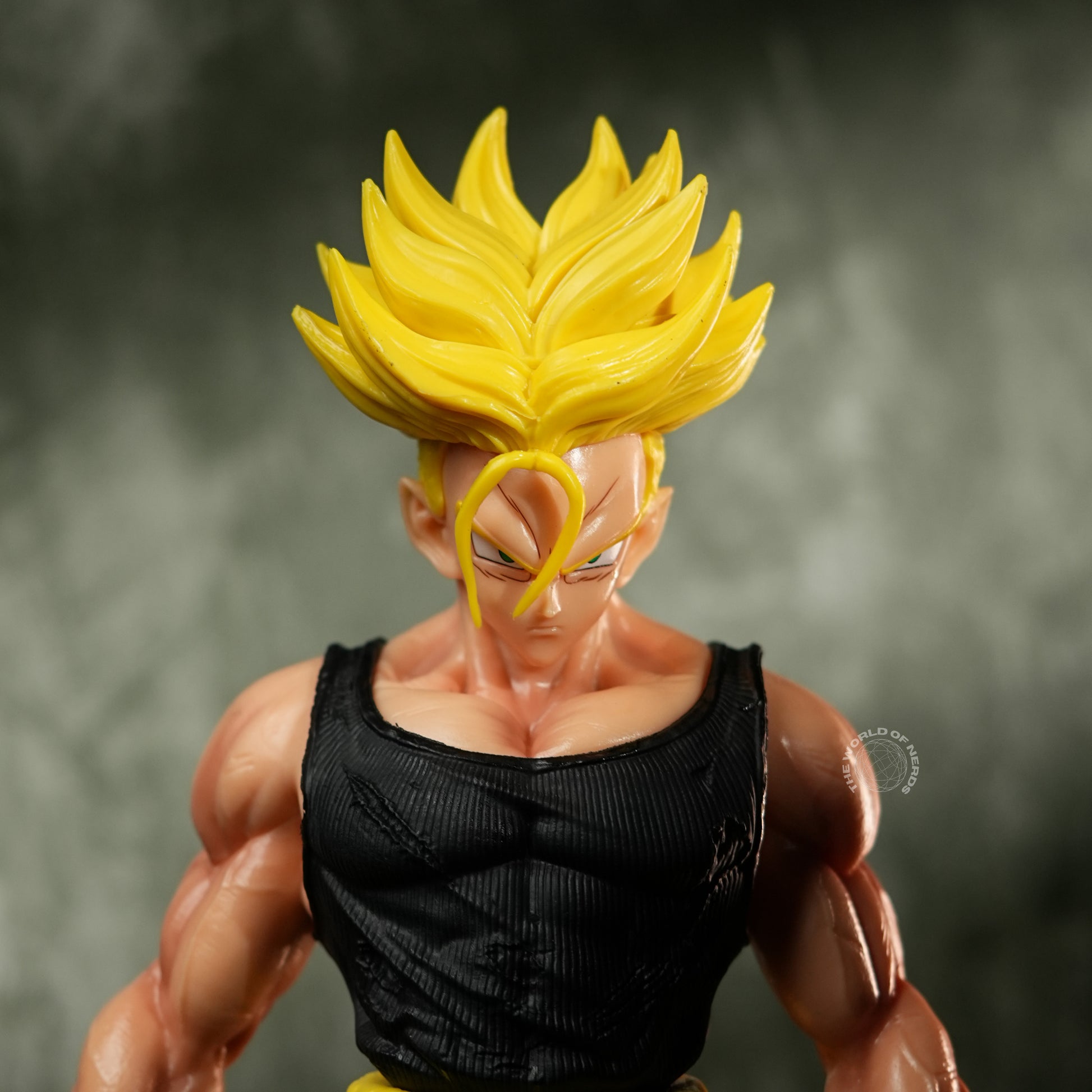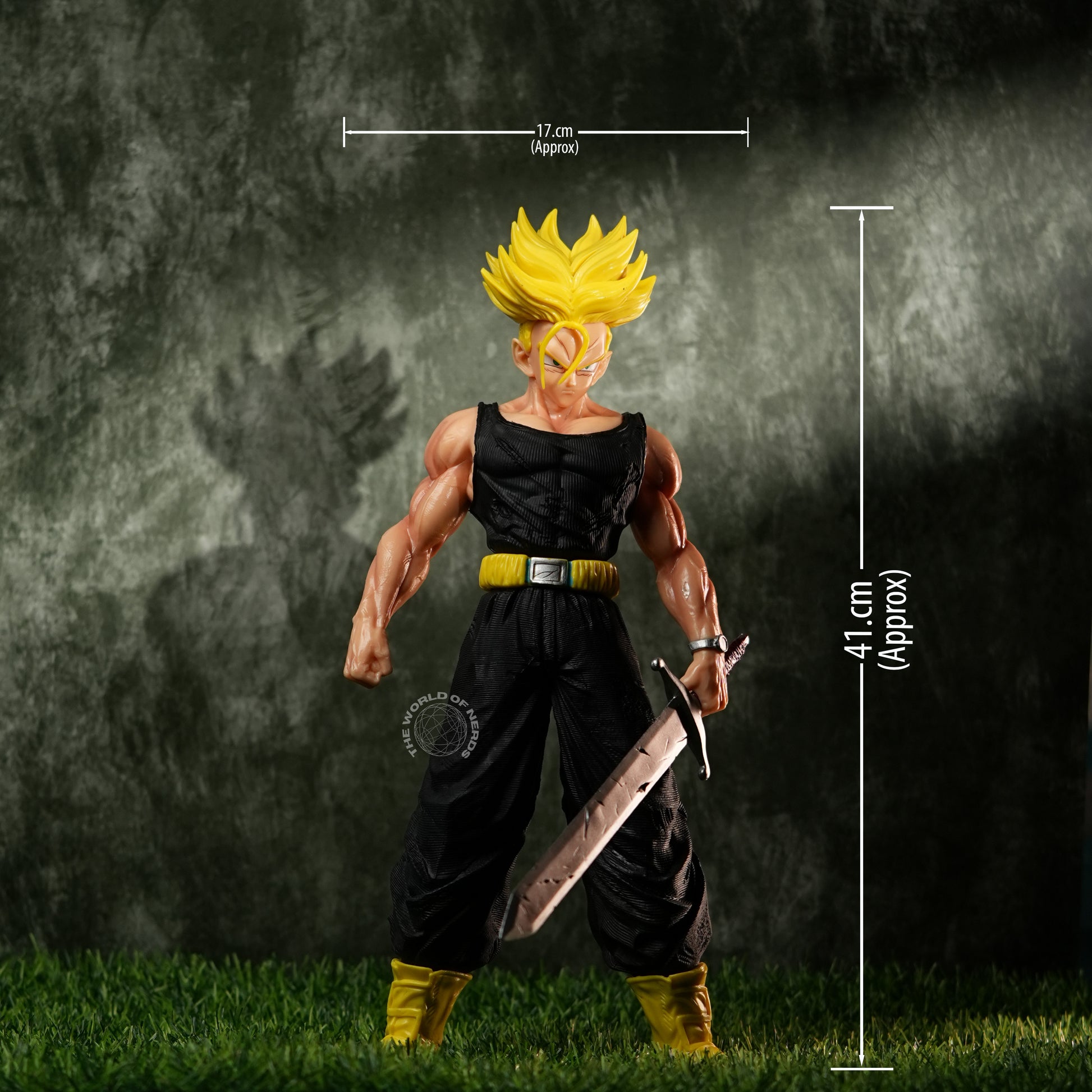 This 41 cm (approx.) figure of Gotenks in Super Saiyan form embodies the raw strength and energetic spirit of the fusion warrior. With his sword in hand, the figure radiates an air of both determination and readiness for battle. The muscular build, along with the fiery glow of his golden hair, reflects Gotenks’ powerful transformation. This collectible perfectly blends the fiery energy of the Saiyan legacy with the playful confidence of this unique fusion. It’s a powerful depiction of Gotenks at his peak.