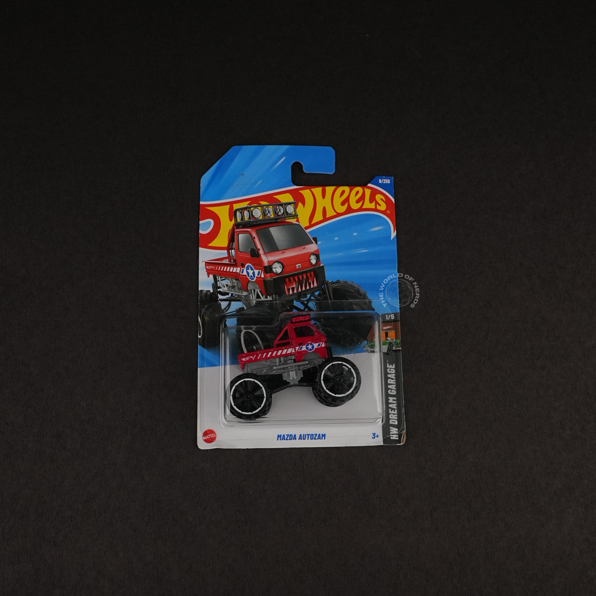 Unleash the power of the Hot Wheels Mazda Autozam from the HW Dream Garage series. Featuring a bold red body, lifted monster truck design, and rugged detailing, this diecast collectible stands out in any collection. Perfect for Hot Wheels fans and collectors who love off-road inspired mini trucks and unique JDM rides.