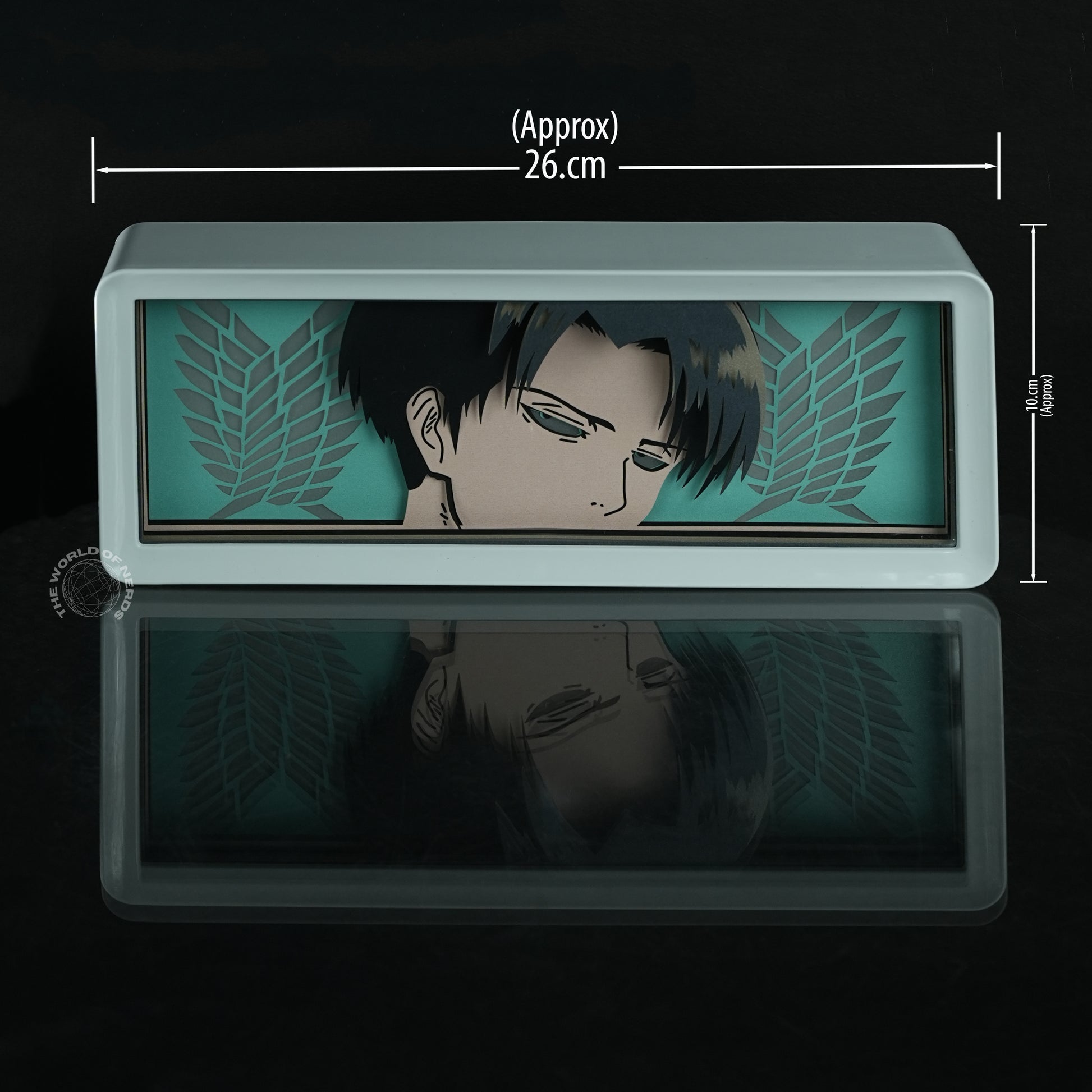 Bring a calm yet powerful presence to your room with this Approximately 26cm x 10cm Levi Ackerman LED shadow box light, featuring a focused Levi against the iconic Wings of Freedom backdrop. The soft glow from the layered acrylic design captures Levi’s quiet determination, making it a perfect addition to any anime shelf or desk setup. Whether you’re working late nights or unwinding with your favorite episodes, this collectible decor piece adds a subtle reminder of Levi’s unshakeable resolve, reflecting beautifully on your workspace with a gentle reflection that deepens the scene’s emotion.