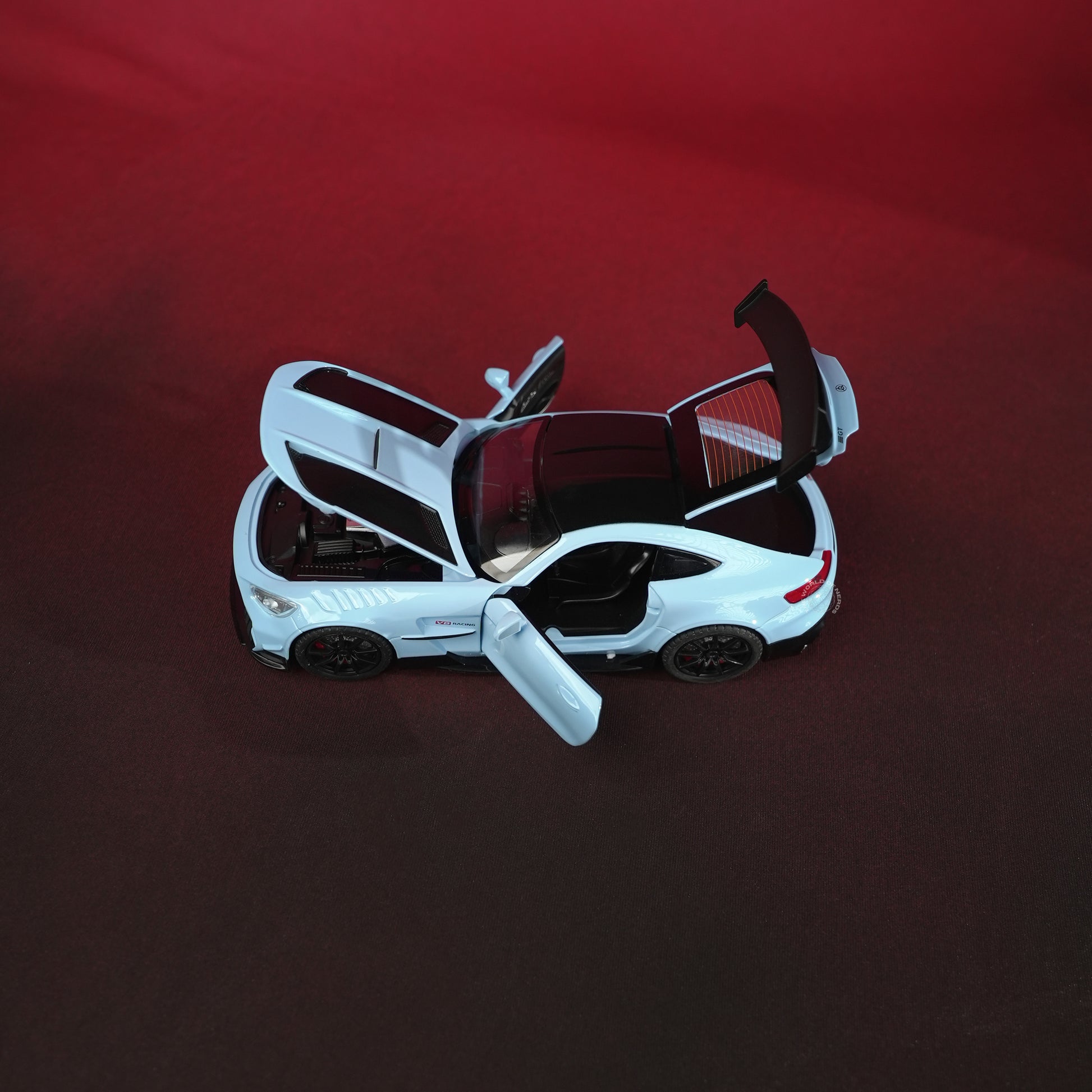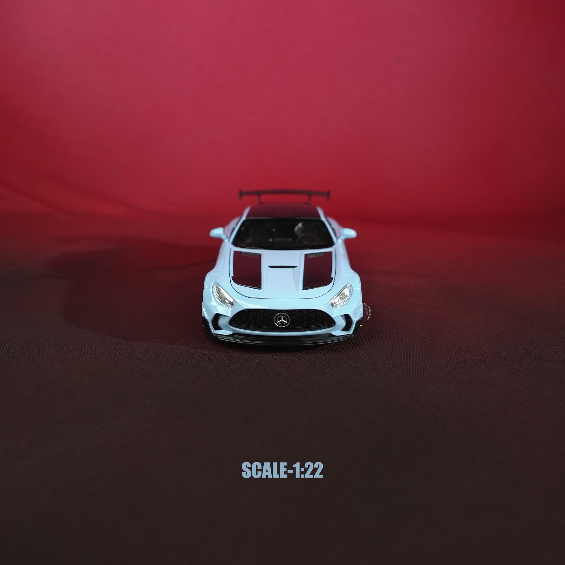 Experience dynamic performance with the MERCEDES AMG GT R BLUE SCALE - 1:22 model. This 1:22 scale diecast features a striking blue finish, aggressive aerodynamic design, and finely detailed interiors. With opening doors and premium craftsmanship, it reflects the true spirit of AMG performance. Perfect for collectors and sports car enthusiasts, this model is a bold addition to any collection.