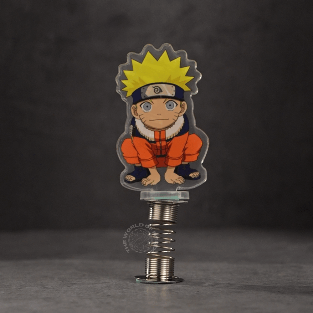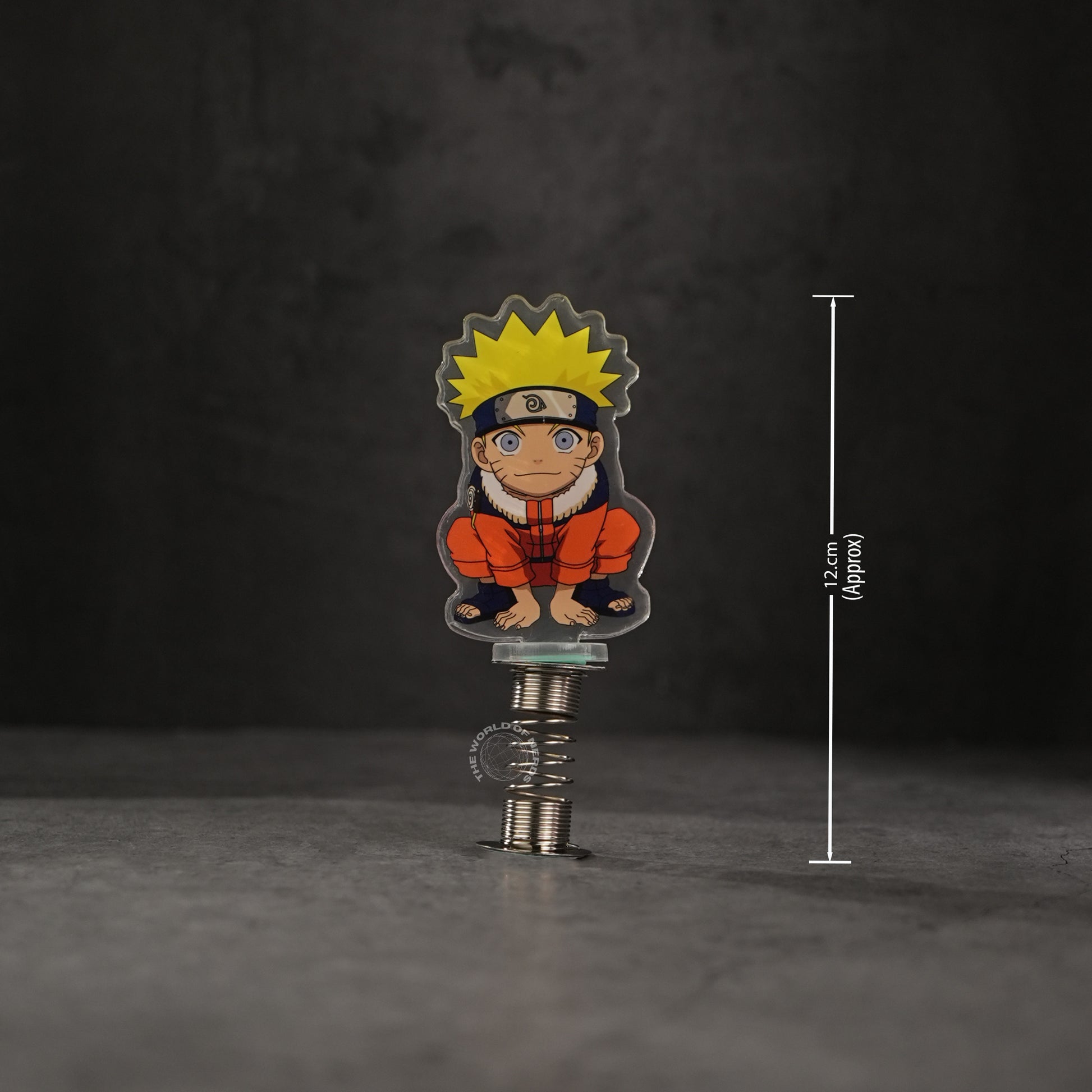 This adorable Naruto figure captures the playful spirit of the character, frozen in an action pose. Perched atop a spring base, it adds an extra layer of dynamic movement to the display. Its bright yellow hair and iconic orange outfit make it a standout collectible for anime fans. The figure stands approximately 12 cm tall, bringing the essence of Naruto into any space with a touch of whimsical motion.