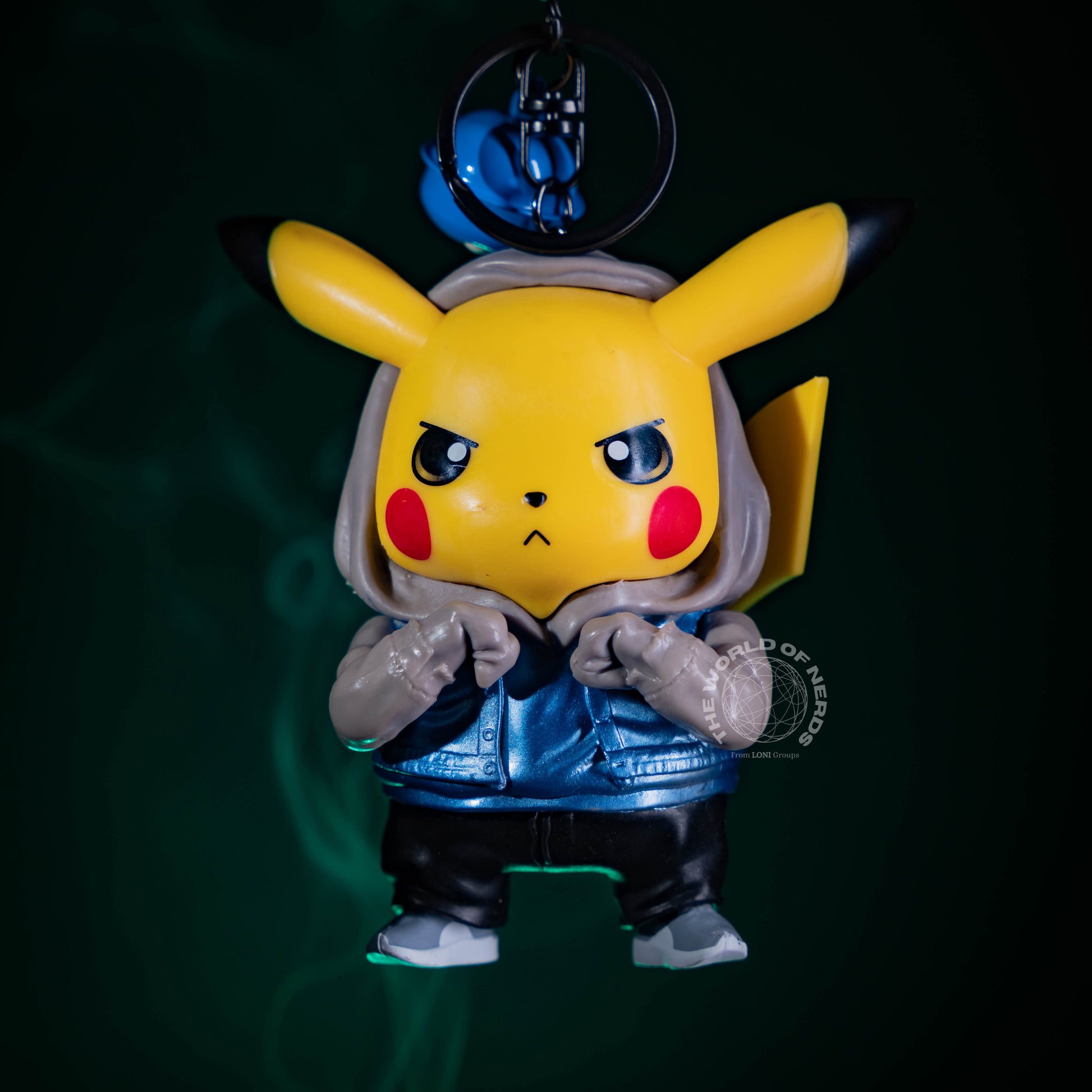PIKACHU IN BLUE AND GREY HOODY KEYCHAIN