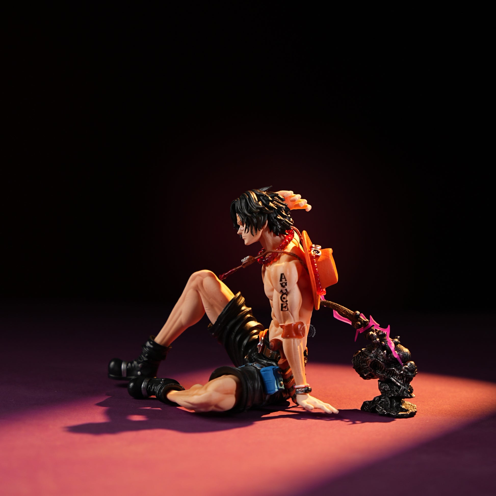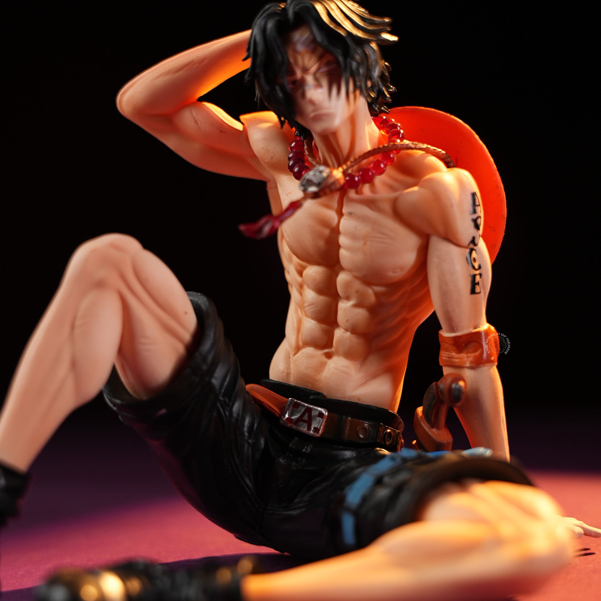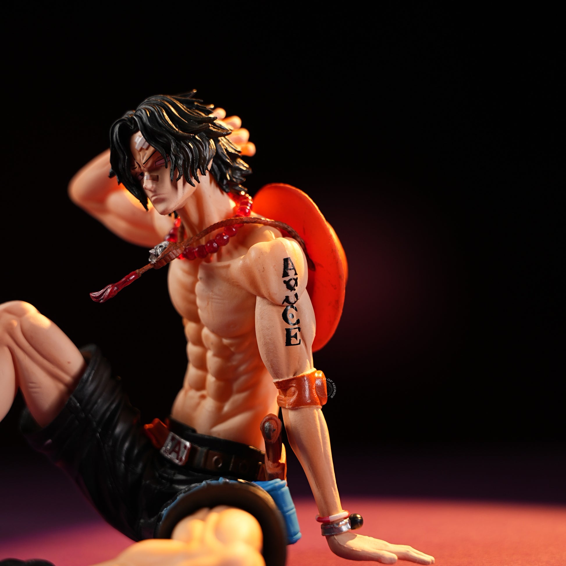 Measuring about approximately 12cm both in height and width, this striking figure captures Portgas D. Ace in a rare moment of calm after the firestorm. Sitting comfortably with one arm draped behind him and his signature hat at his back, Ace’s strong frame and confident posture reflect the legacy of a fearless pirate. The vivid flame accessory and detailed tattoos add an electrifying energy, yet his laid-back pose hints at contemplative nostalgia. This collectible masterfully blends Ace’s fiery spirit with subtle undertones of vulnerability, making it a visually powerful tribute for any One Piece fan.