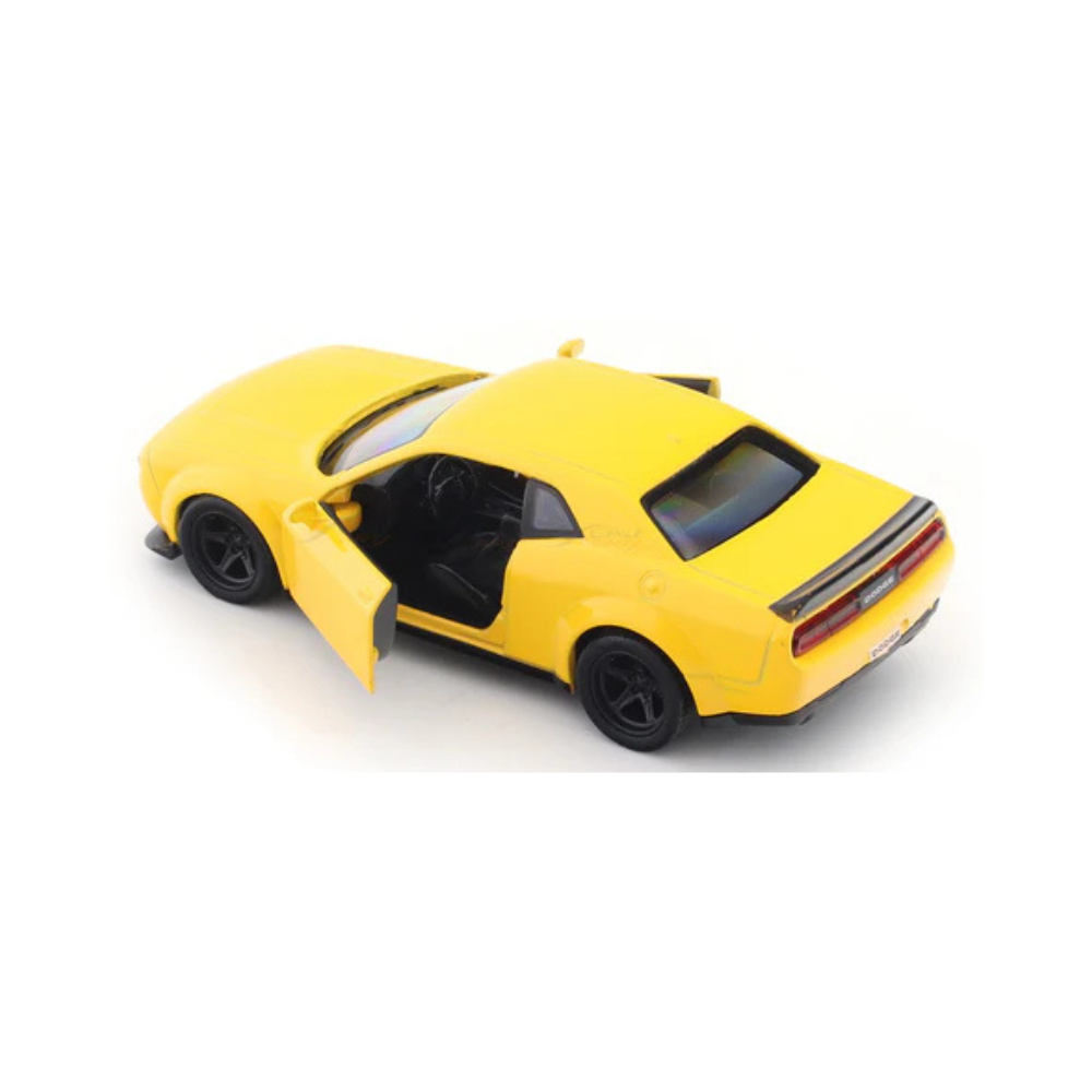 This RMZ CITY DODGE CHALLENGER SRT DEMON PULLBACK SCALE - 1:32 is a high-quality and accurate model of the fierce Dodge Challenger SRT Demon. Featuring a smooth pullback mechanism, this 1:32 scale model is both a collectible treasure and a fun, interactive toy for kids and adults alike. Perfect for muscle car enthusiasts and collectors.