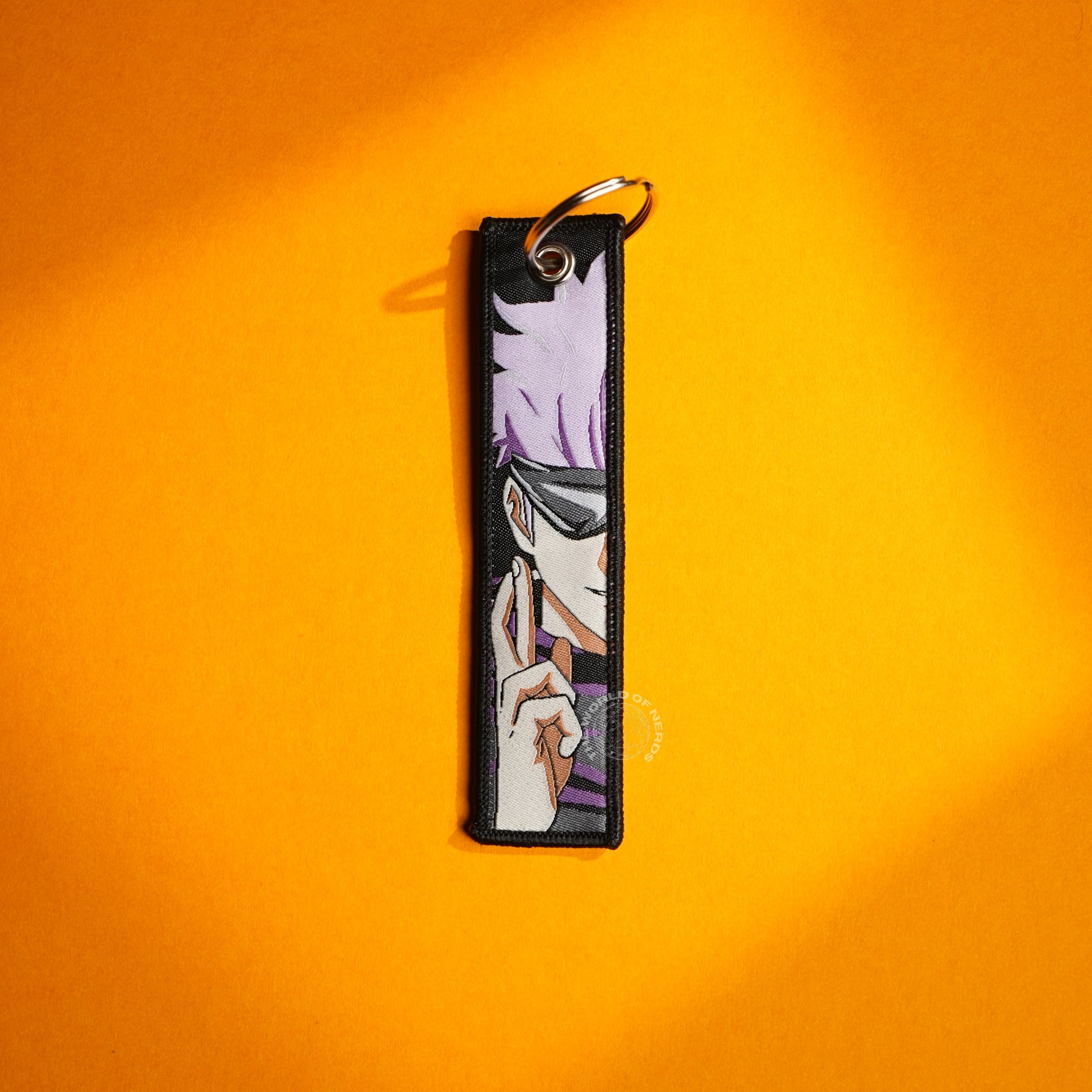 This keychain features the enigmatic Gojo Satoru, with his signature blindfold and captivating expression. The combination of light and dark tones symbolizes his mysterious nature, while the vibrant purple highlights his immense power. It’s a piece that channels the aura of a sorcerer who sees and controls the world differently.