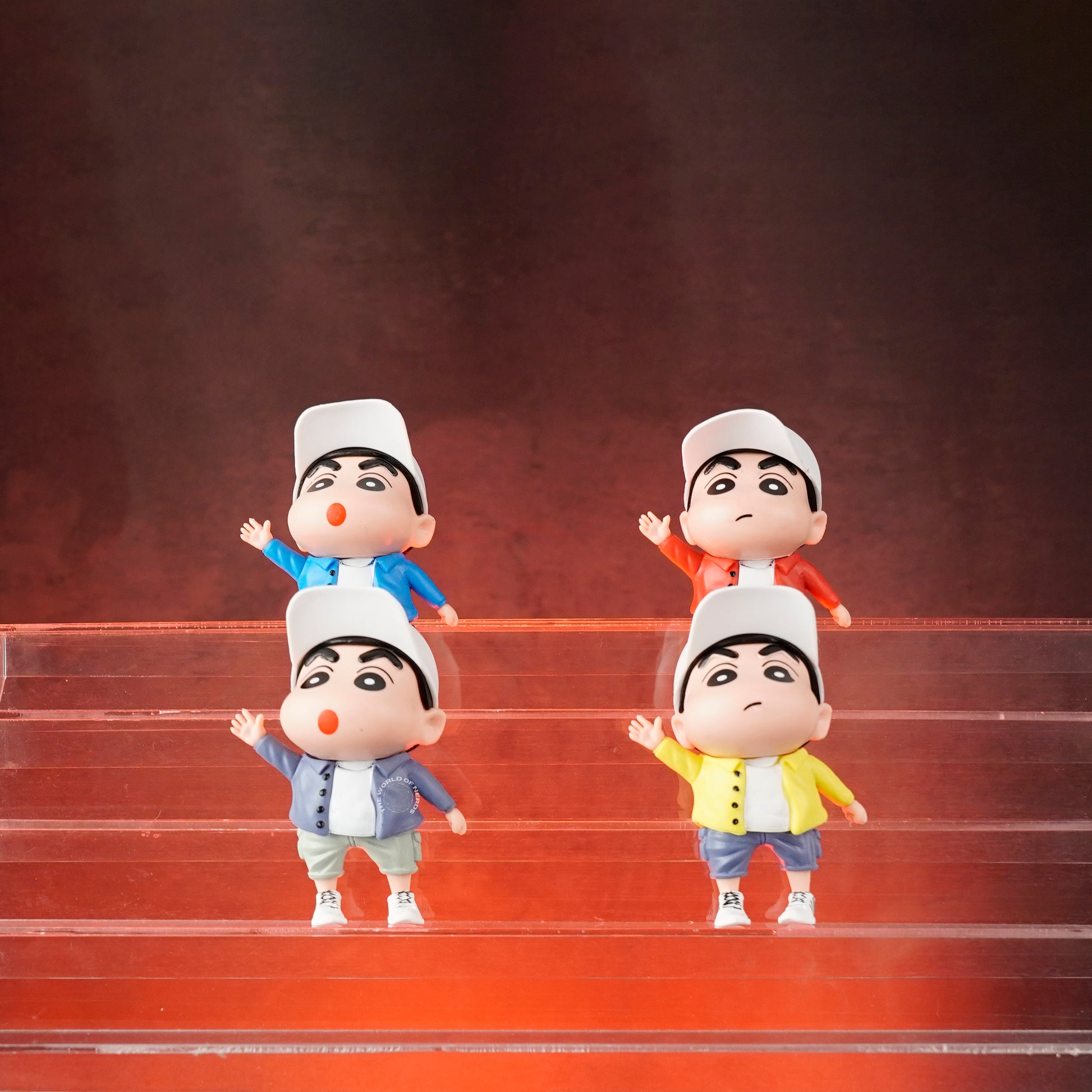 Enhance your collection with this set of 4 Shinchan action figures, each featuring his iconic cap. These highly-detailed figures are perfect for display or imaginative play, bringing the beloved manga character to life. Made with quality materials for durability and accuracy in design.