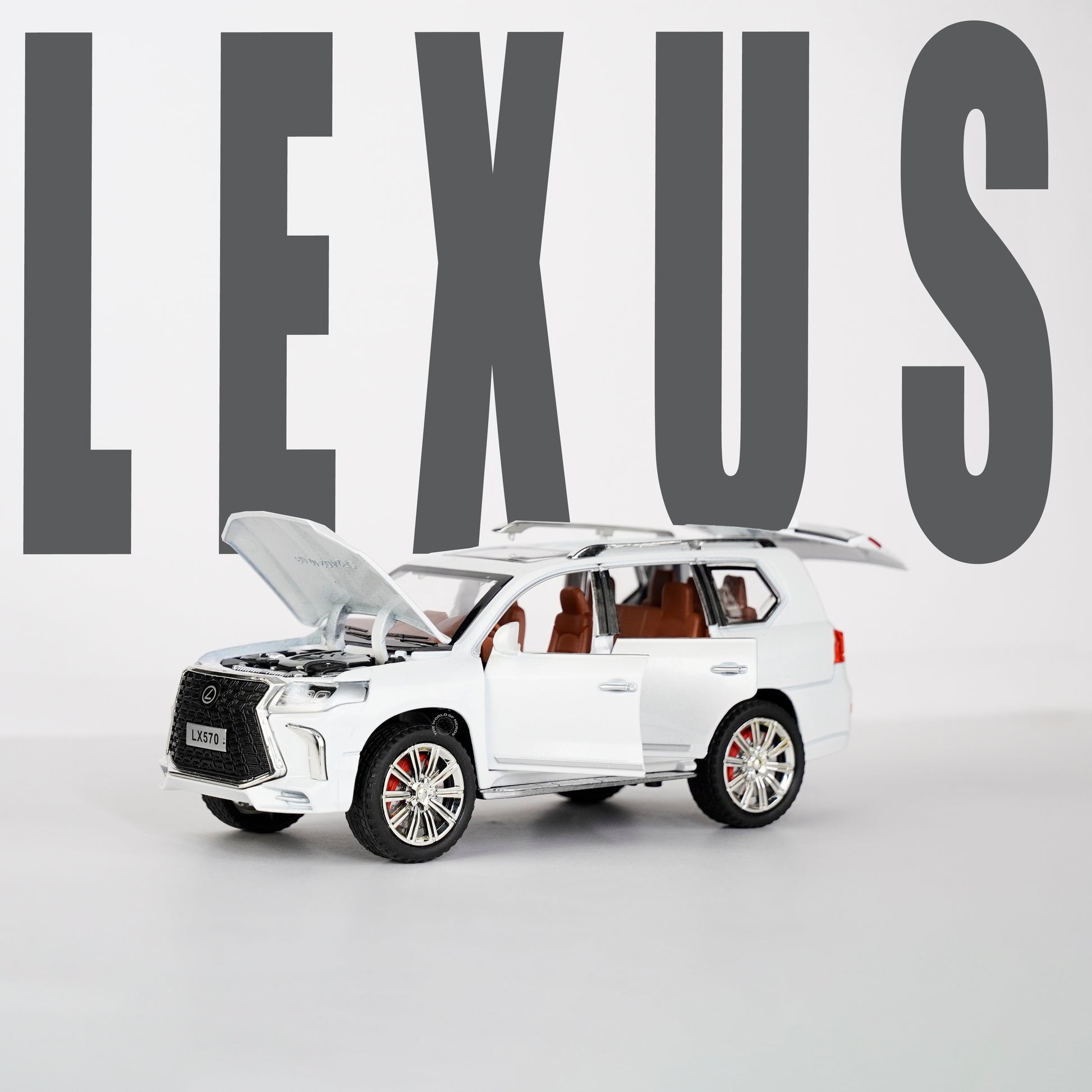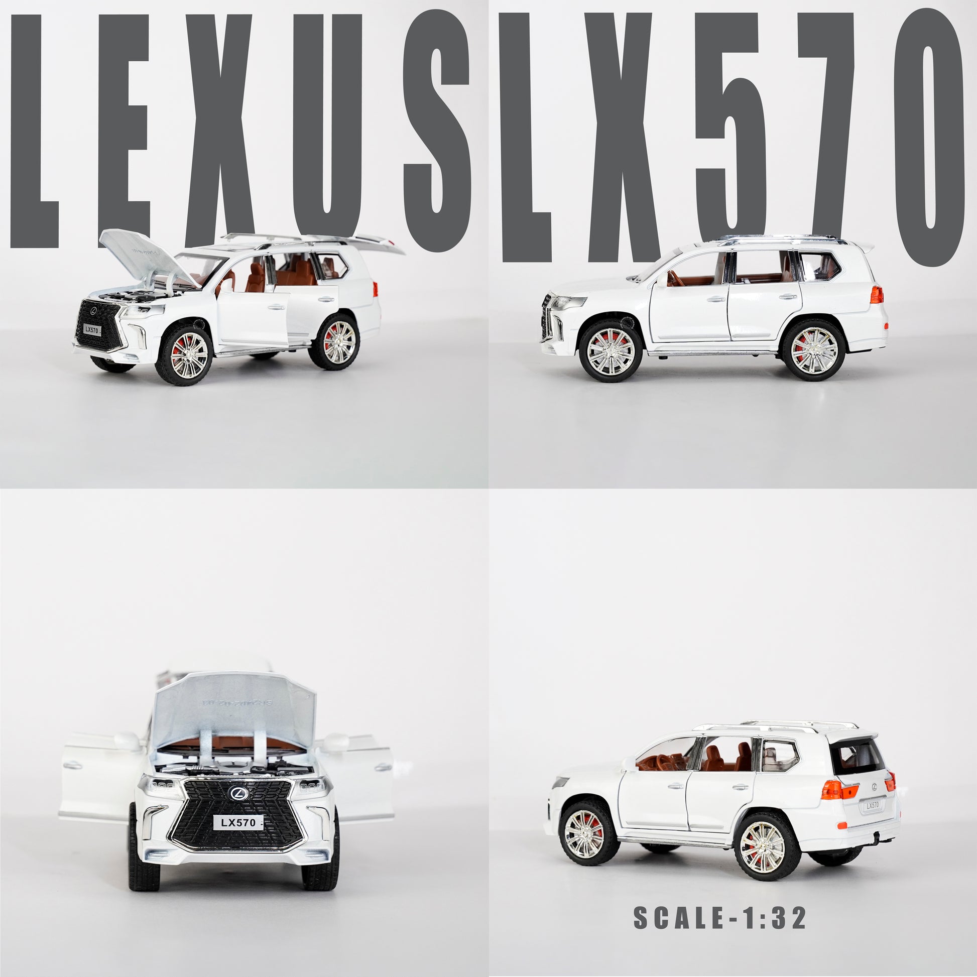 This 1:24 scale WHITE-LEXUS LX570 offers a realistic and detailed miniature of the luxurious car. Crafted with precision and attention to detail, it showcases the iconic design and high-performance features of the Lexus LX570. Perfect for collectors and enthusiasts alike.