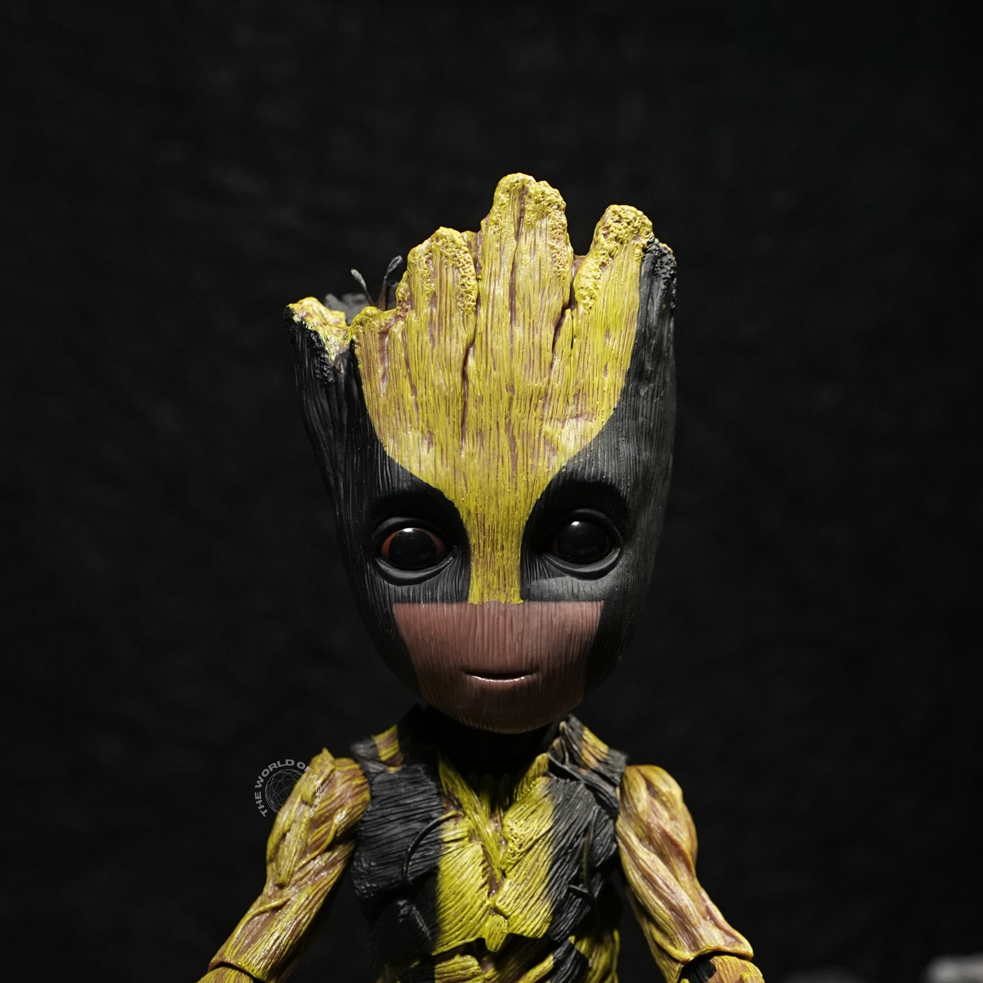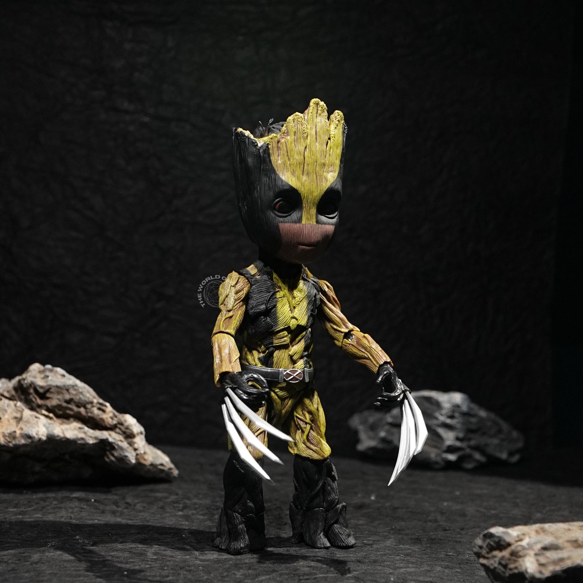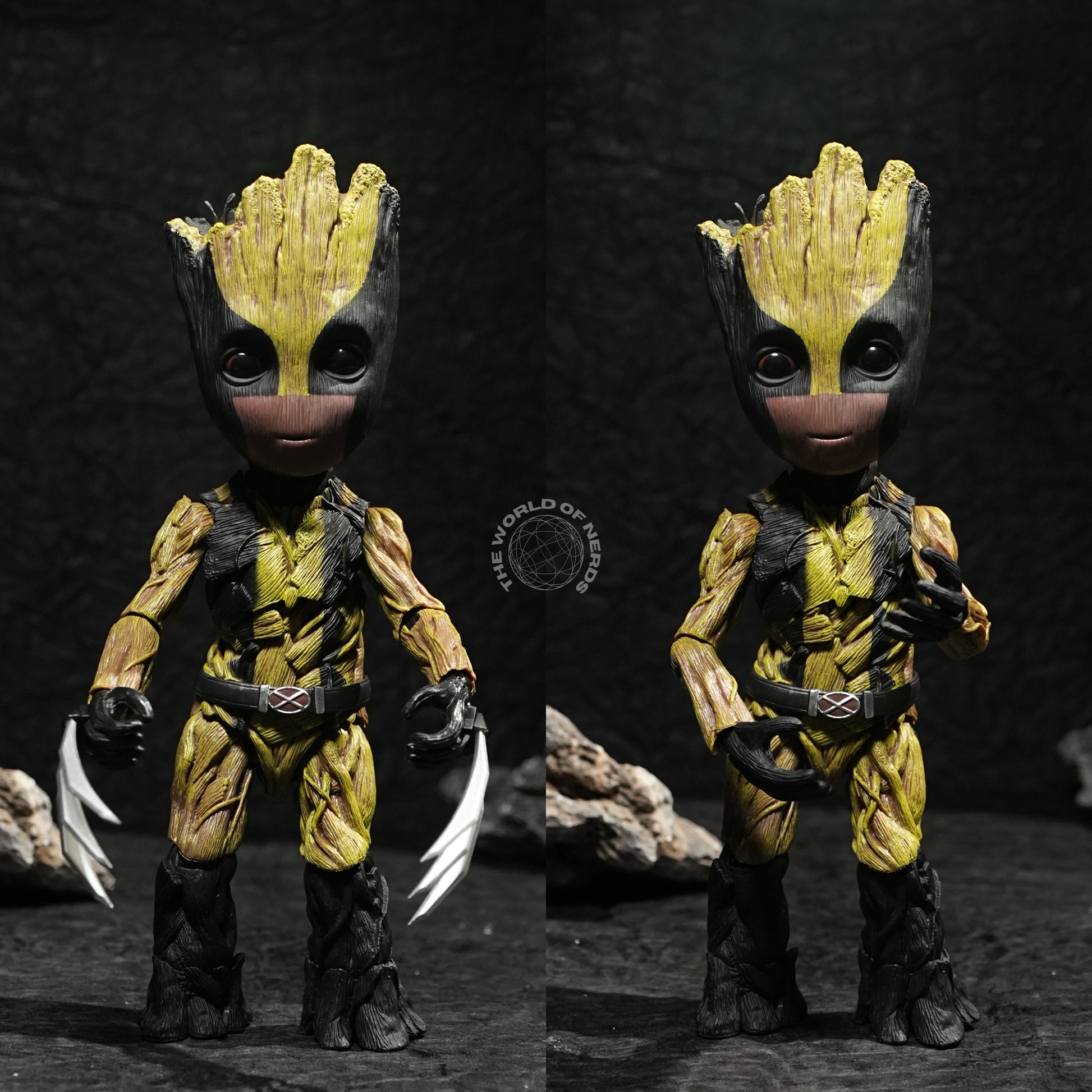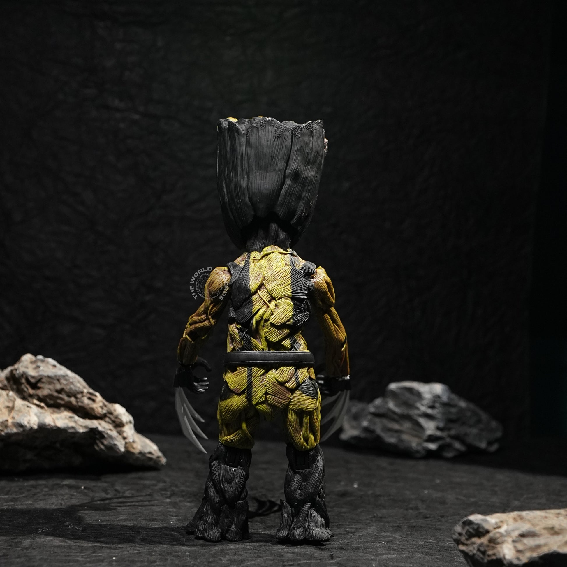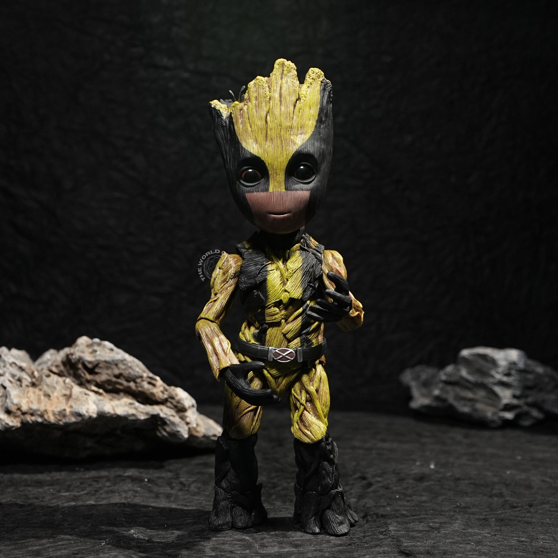 A stunning fusion of Groot’s nature-inspired features with Wolverine’s fierce personal, this collectible figure stands proudly at 27 cm (approx.). The bold yellow and black design of Wolverine’s suit merges seamlessly with Groot’s distinctive tree-like texture. Displayed against a rocky backdrop, it captures both the untamed spirit and strength of this hybrid hero, evoking feelings of power and wonder.